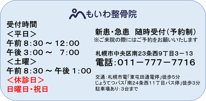 もいわ整骨院のホームページをご覧いただきまして誠にありがとうございます。当院では日常生活やスポーツなどでのケガや交通事故治療だけではなく、あらゆる身体の痛みや不調を治療の対象としています。ご相談は無料ですので、お気軽にご来院・ご相談ください。